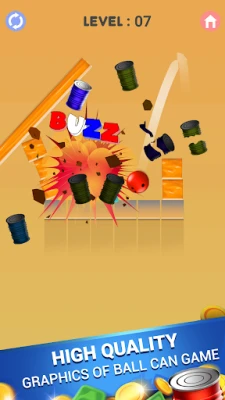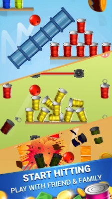 Let’s start shooting the ball to knock down all the cans. For this, you need accuracy to select the best path to hit the cans and shoot them down. Hit them hard and make a big boom to knockdown all bottles in limited hits to play the can game for long time.