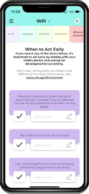 • Appointments – keep track of your child’s doctors’ appointments and get reminders about recommended developmental screenings