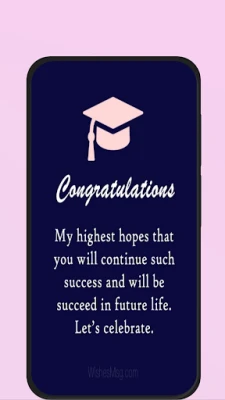 You will find in the congratulations graduation App a large amount of congrats wishes for graduation ,and, congratulations on you graduation ,and, wish on graduation ,as well as grad congratulations messages ,and a diversity of graduationwishes ,and, congrats grad wishes ;and; graduates congratulations message and congrats of graduation and sweet graduation messages and happy graduation day and graduation card messages.