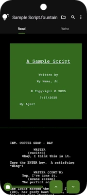 Read Final Draft (.fdx) or Fountain script formats and edit in plain-text. Then output your auto-formatted screenplay to print, PDF, and .fdx. Also edit plain text Markdown markup files (ending in .md).