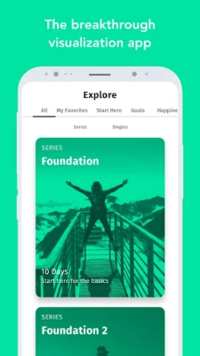 After completing the free introductory visualization content, subscribe to unlock over 125+ sessions of premium content. Continue your journey with our Foundation 2 series and discover other content like achieving a specific goal, reducing stress, creating new habits or developing self appreciation. Our premium content is more advanced and more tailored toward exactly what you need.
