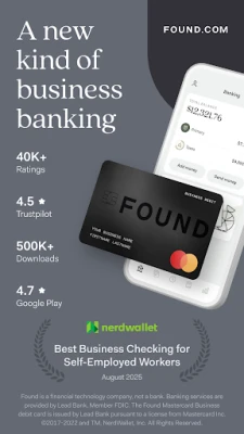 Freelancers, contractors, and small businesses love Found. With robust business checking plus smart bookkeeping and tax tools, Found simplifies your entire workflow. Track expenses, save receipts, save for taxes, send invoices, and pay contractors—all from the app. And all without costly hidden fees. Get so much more for free with Found.