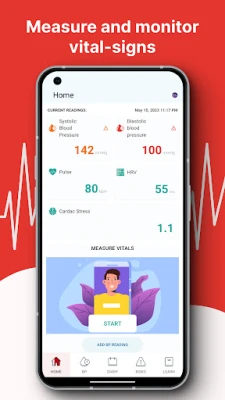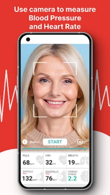 Precision Measurement: Quickly measure vital heart health indicators such as Blood Pressure, Heart Rate, and Heart Rate Variability using just your camera.