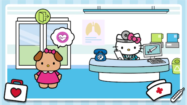 This educational game for boys and girls about the kids hospital will show how a busy hospital works, starting from reception and to the offices of various doctors with the atmosphere of funny cartoons with Hello Kitty.