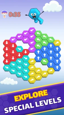 In this captivating color puzzle game, your goal is to clear the board by tapping hexagon tiles. Guide them away with their arrows and stack them in the right order. It's a rewarding mental workout! Each move counts as you challenge your brain in timed hexa levels with limited steps. Can you solve them all? ⚡