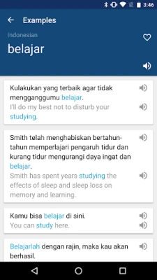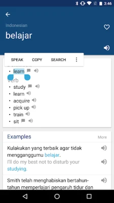 The Indonesian English Dictionary & Translator app enables you to search Indonesian & English words with definitions, examples, pronunciation, and more.