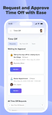 Time-Off Requests: Submit and track vacation or personal day requests effortlessly. View available days and follow the approval process, all from one place.