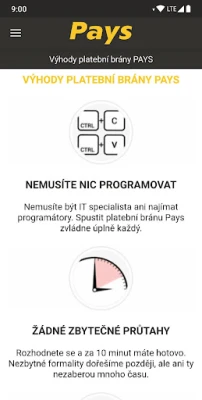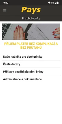 Aplikace Pays usnadňuje správu a ovládání platební brány obchodníkům. Prostřednictvím aplikace se můžete přihlásit do své administrace, kontrolovat příchozí platby, provádět vratky, zasílat potvrzení zákazníkům. Lze také přímo stahovat měsíční výpisy, zadávat platební předpisy a platební odkazy. Velmi jednoduše můžete provést okamžitý převod tržeb na svůj bankovní účet.