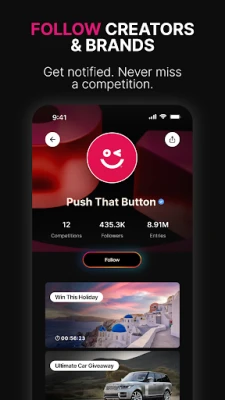 Enter free competitions from your favourite Talent & Brands. Win incredible prizes at the Push of a Button.