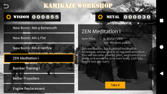 Fly and survive 24 challenging missions, improve your aircraft and collect all the medals real Kamikazes never had the chance to get!