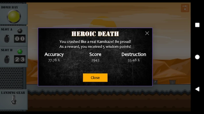 In this game you play the role of a Reasonable© Kamikaze, who is willing to sacrifice his life for the country, but doesn't lose sight of the real objective: destroying the enemy.